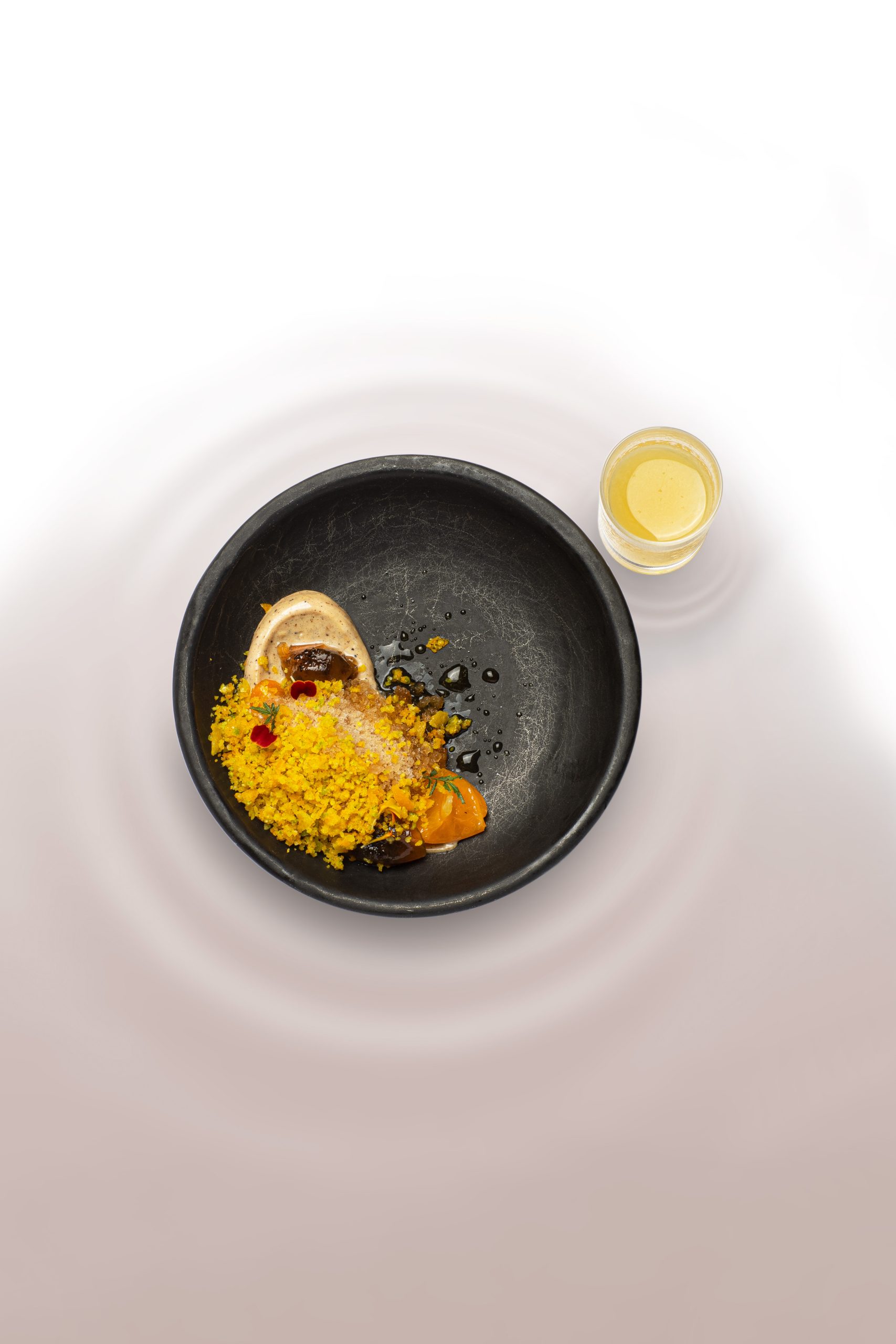 - Chocolat légèrement fumé, riz noir sauvage et saké